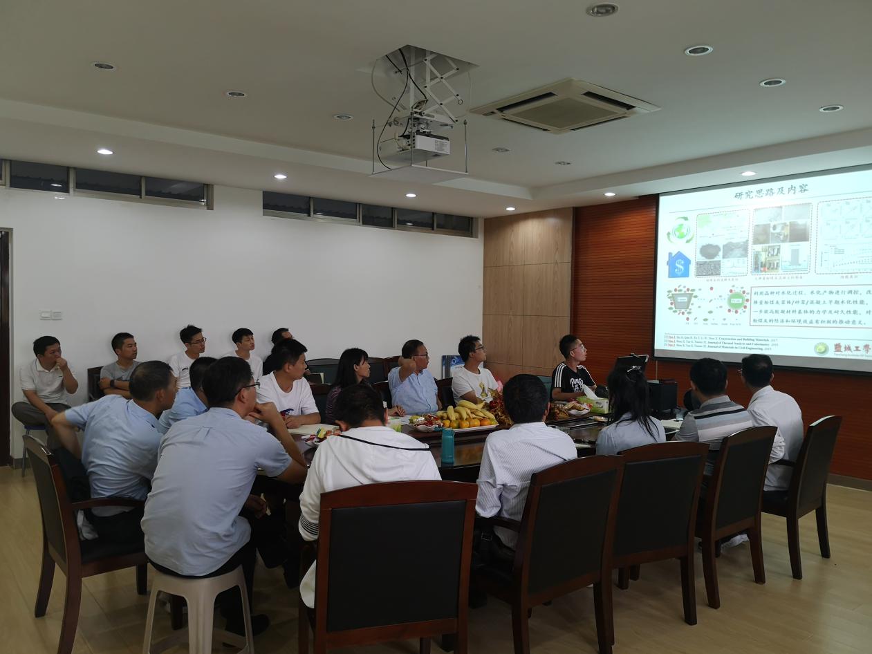 孙晋峰博士作为优秀博士代表首先进行了学术汇报,他简单介绍了博士期间关于高效早强剂对胶凝材料性能研究方面的工作,接着详细阐述了自己在固废资源化方面开展的新课题,随后向大家分享了今年基金申报的一些经验和体会,最后对自己在课题研究、成果发表及教学工作方面作了规划和展望,并对实验室提供的良好科研平台和团队帮助表示感谢。